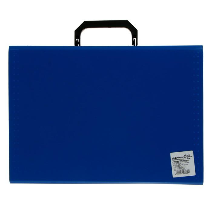 Вместительная папка-портфель предназначена для безопасной транспортировки документов. Она позволит упорядочить бумаги и сохранить их в целости. Формат: А4. Количество отделений: 6. Толщина: 700 мкм. Вмещает до 300 листов. Цвет: синий.