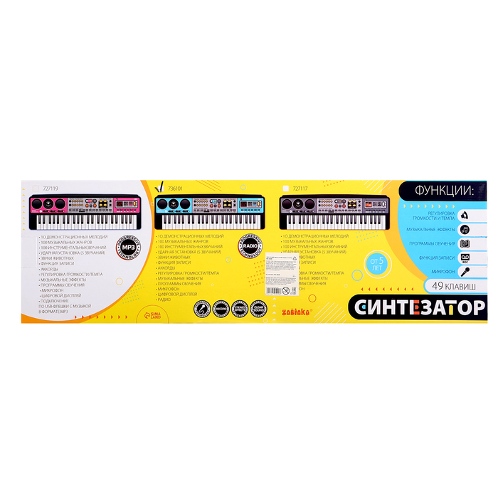Синтезатор «Музыкальный взрыв», 49 клавиш, c USB, работает от батареек и от сети