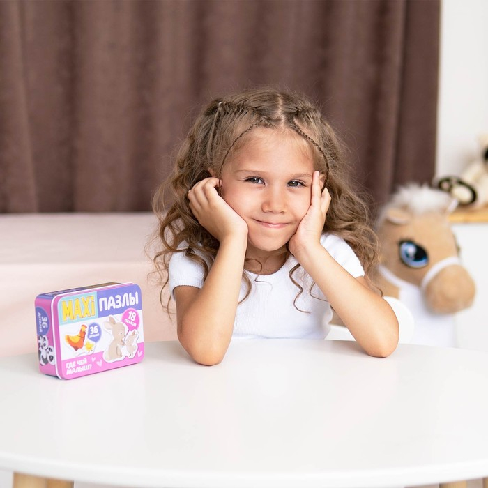 Макси-пазлы в металлической коробке «Где чей малыш?», 36 деталей
