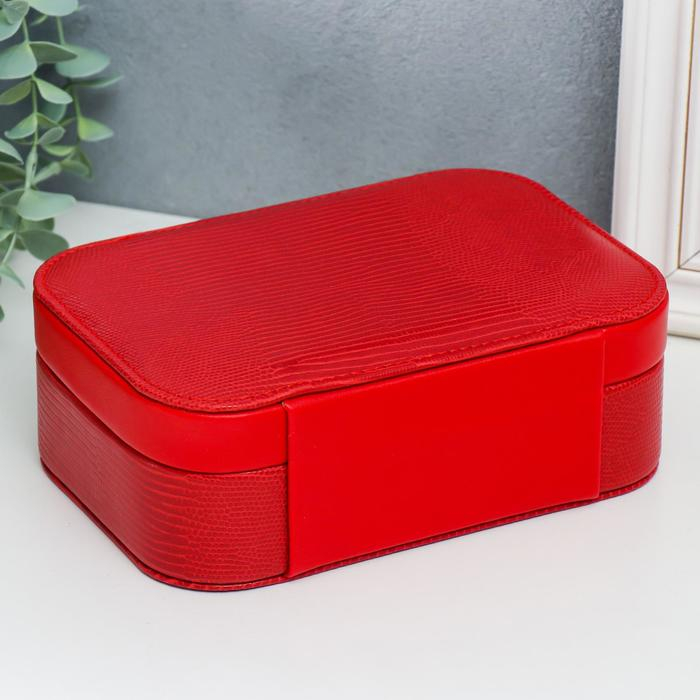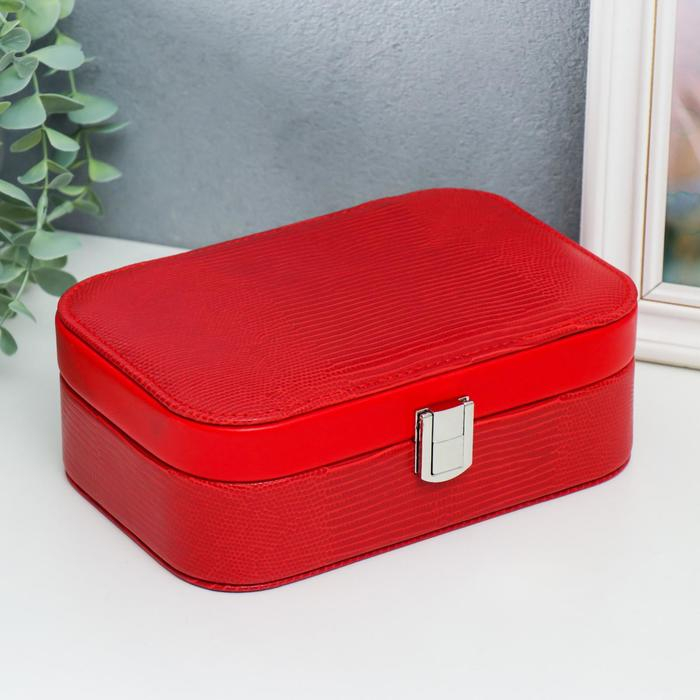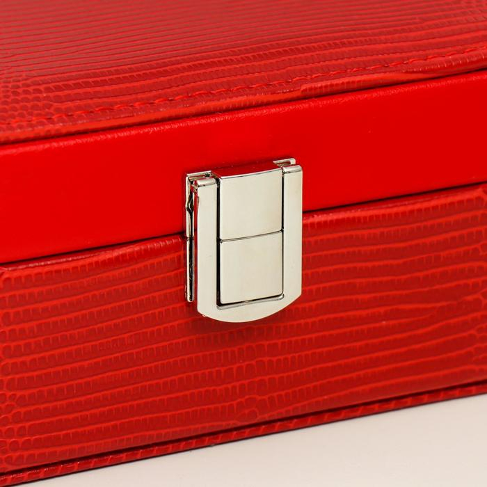 Шкатулка кожзам под часы 1 деление и бижутерию "Рептилия алая" комбинированная 7х14х20 см