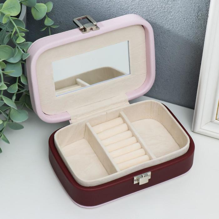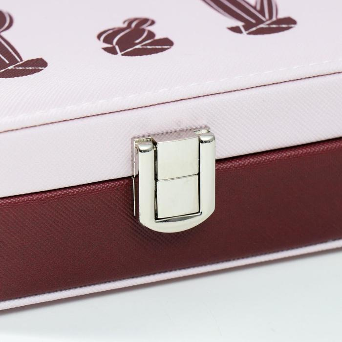 Шкатулка кожзам для украшений "Кактусы" нежно-розовая 5х15х10 см
