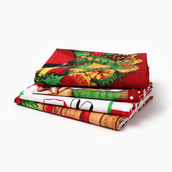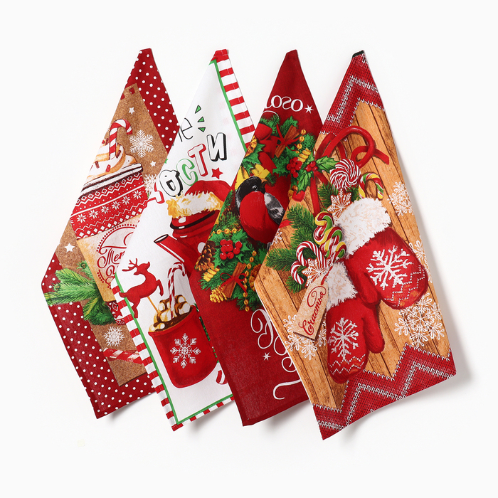 Набор кухонных полотенец Доляна «Сказочного Нового года» 35х60см-4шт, 100% хл