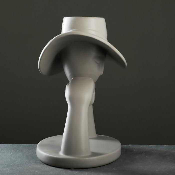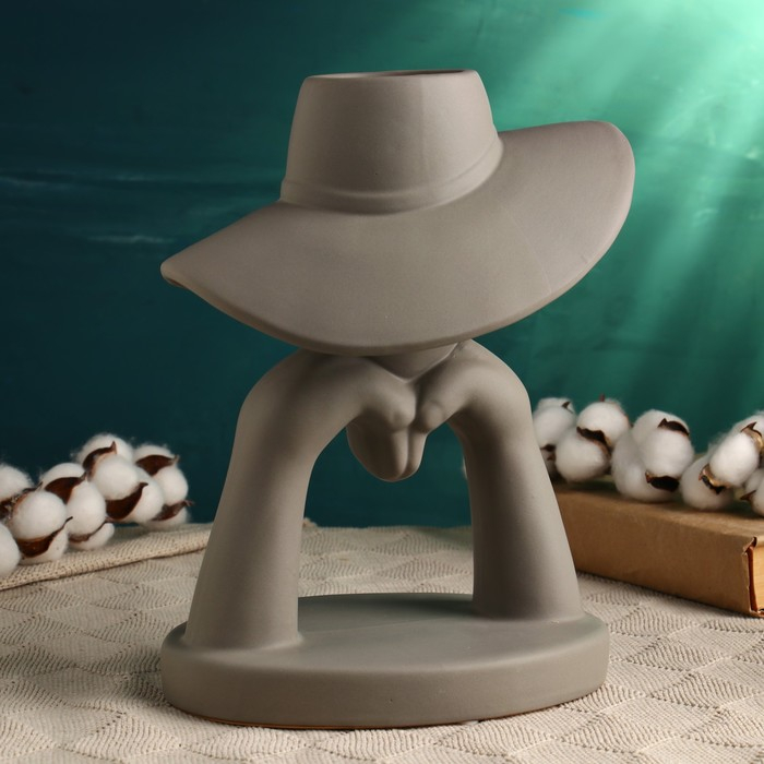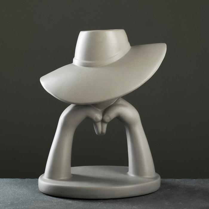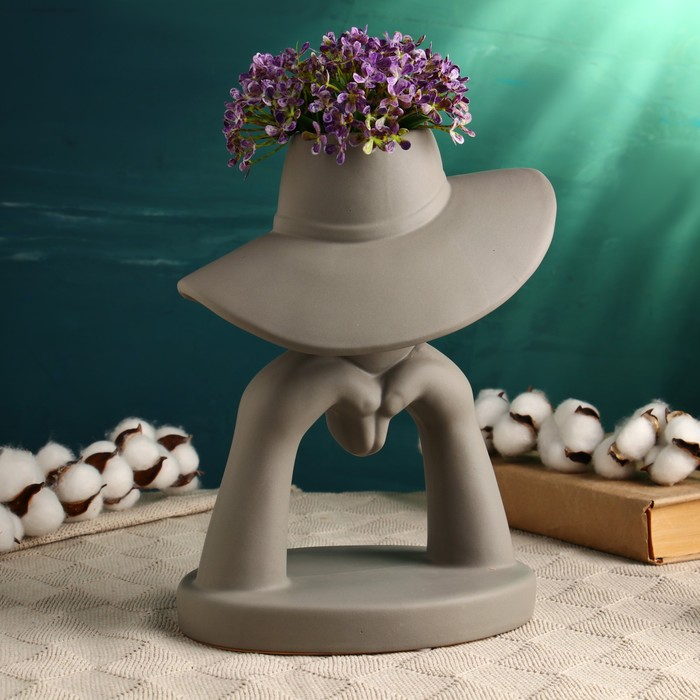 Кашпо "Дама в шляпе" серое, 28х23см