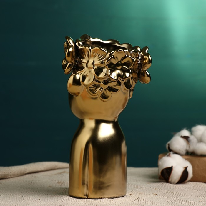 Кашпо - ваза "Мальчик с венком" золотое, 23х10х12см