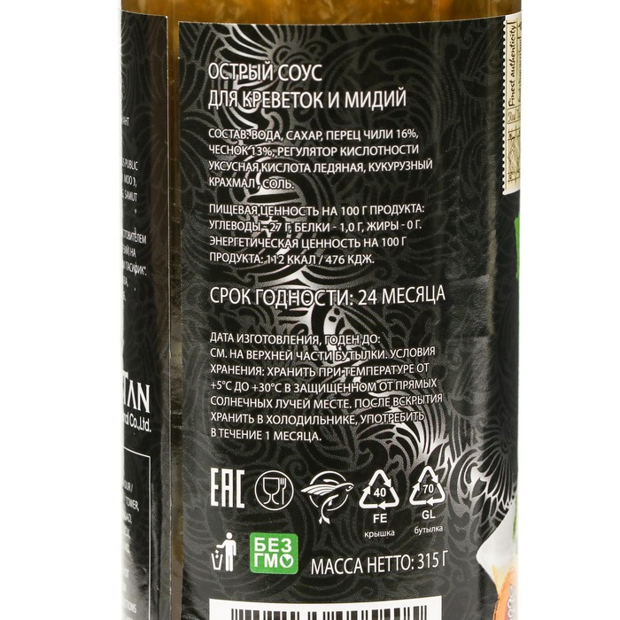 Острый соус для морепродуктов с кусочками зеленого перца чили! Идеально для всех, кто любит блюда с огоньком! Вы добавляете соус к креветкам или к мидиям и чувствуете игру вкусов: соленого, сладкого, кислого и острого. Используйте этот соус как дип-соус к вашим любимым морепродуктам (креветкам, крабам, устрицам и другим) или маринуйте морепродукты, запекайте рыбу.