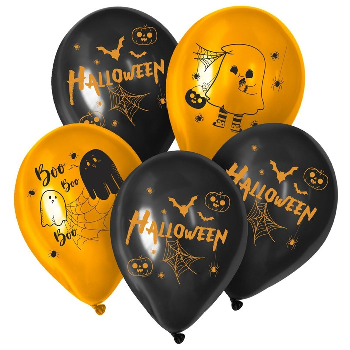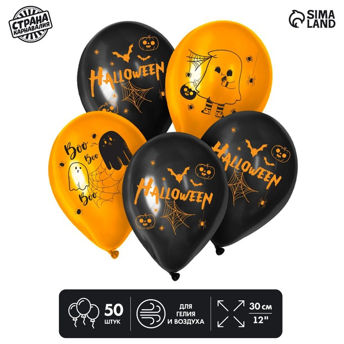 Воздушный шар латексный 12" «Весёлого Хеллоуина», чёрный, оранжевый, 50 шт.