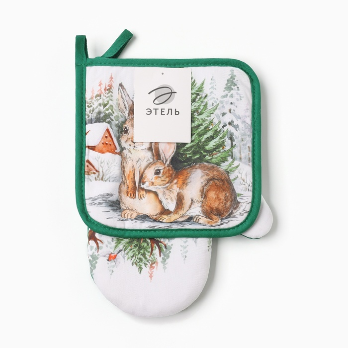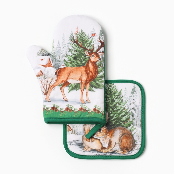 Набор кухонный «Новогодний лес» варежка-прихватка 20х28см, прихватка 19х19см,100%хл