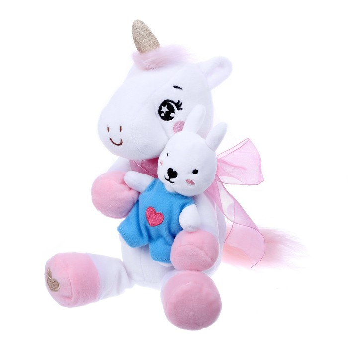 Мягкая игрушка «Единорожка с зайкой», 21 см