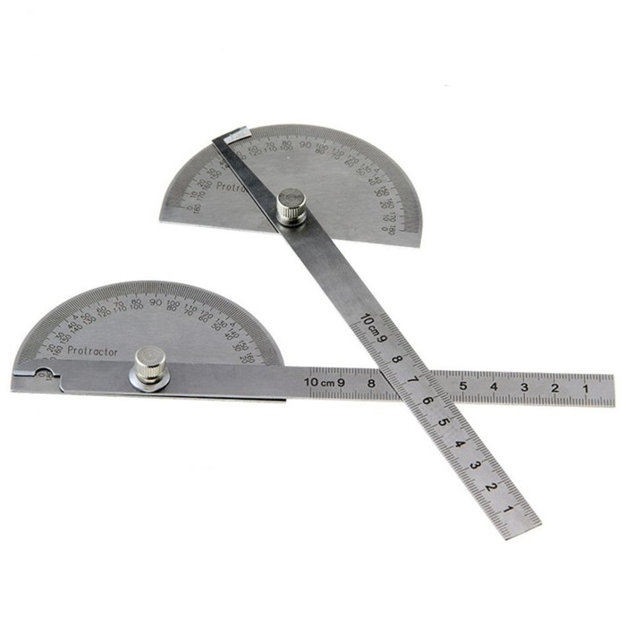 Линейка-транспортир из нержавеющая стали (10 см) будет верным помощником при построении различного рода чертежей, схем и графических рисунков. Линии получатся идеально ровными благодаря такому же ровному краю. Состав: металл.