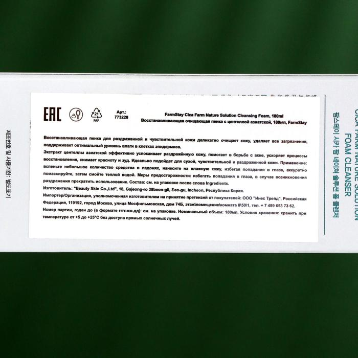Пенка для умывания Farm Stay с центеллой азиатской, 180 мл