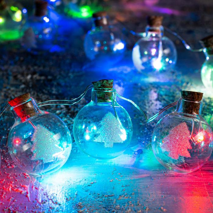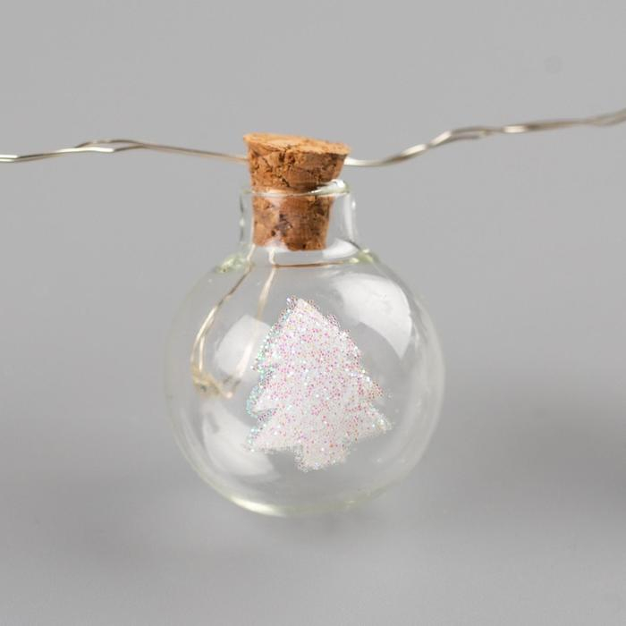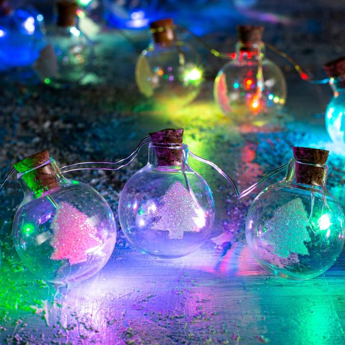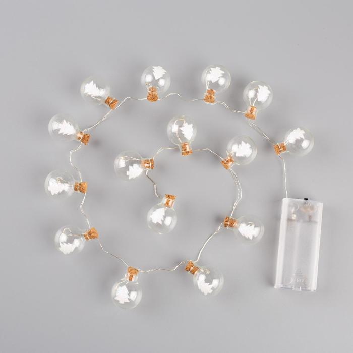 Гирлянда «Нить» 1.6 м с насадками «Шарики с ёлочкой», IP20, серебристая нить, 15 LED, батарейки ААх2 (нет в комплекте), свечение мульти