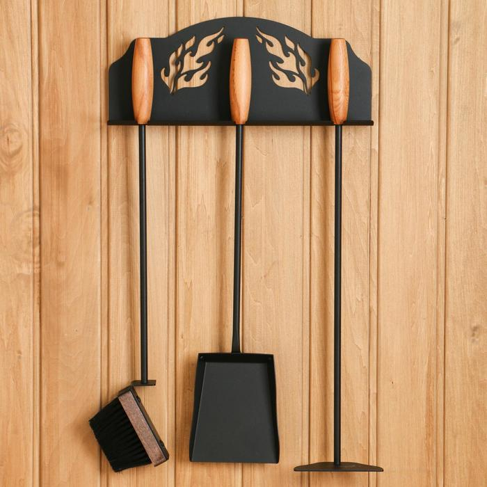 Каминный набор КН 0-2 настенный 3 предмета (щетка, кочерга, совок) черный