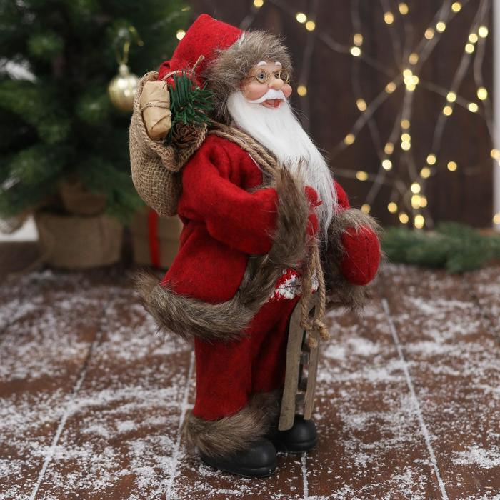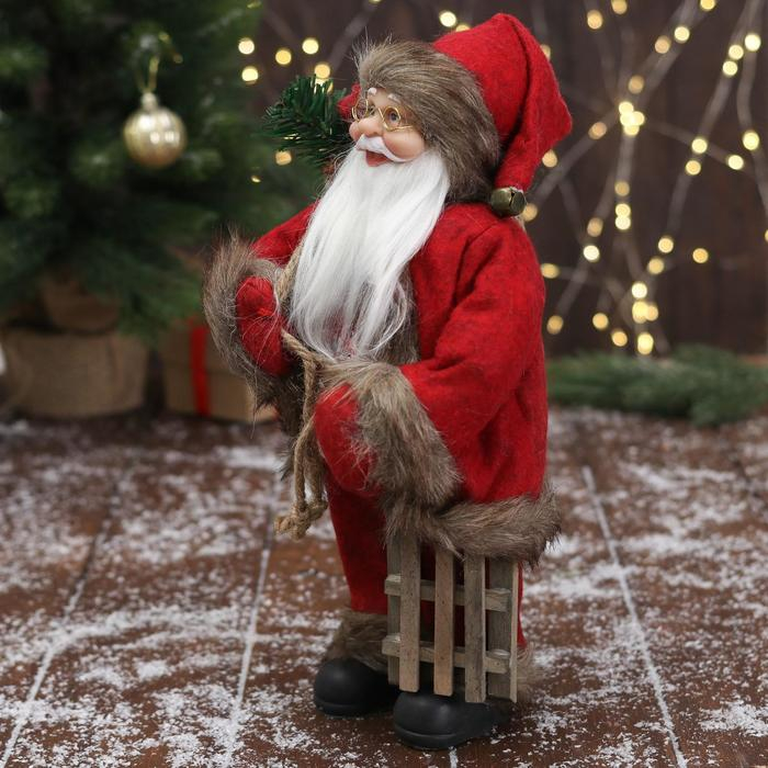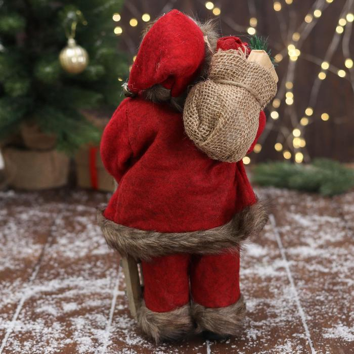 Дед Мороз "В красном костюме, с санками" 30х15 см