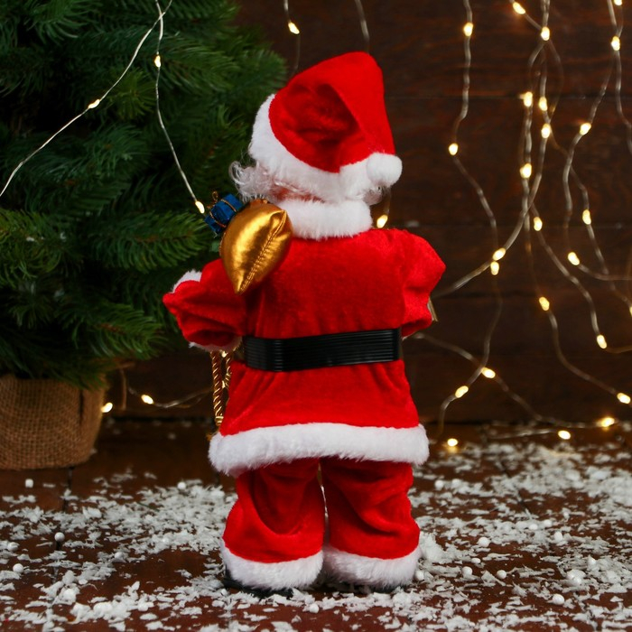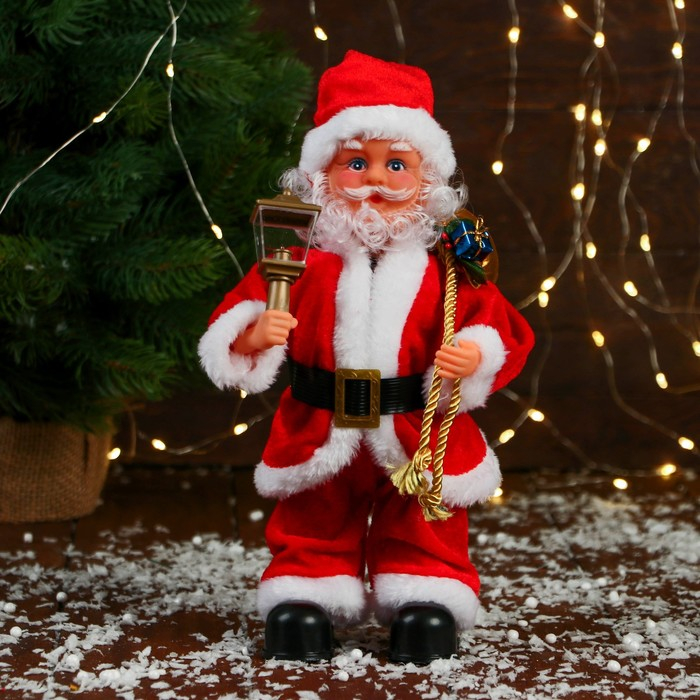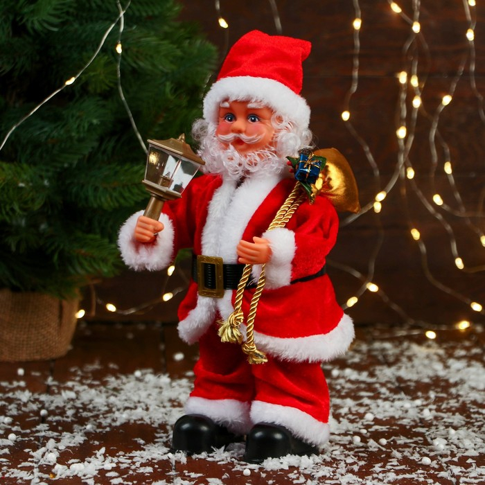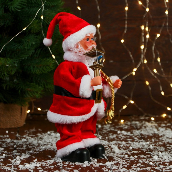 Дед Мороз "Красная шубка, ремешок, с фонариком" с подсветкой, двигается, 27 см