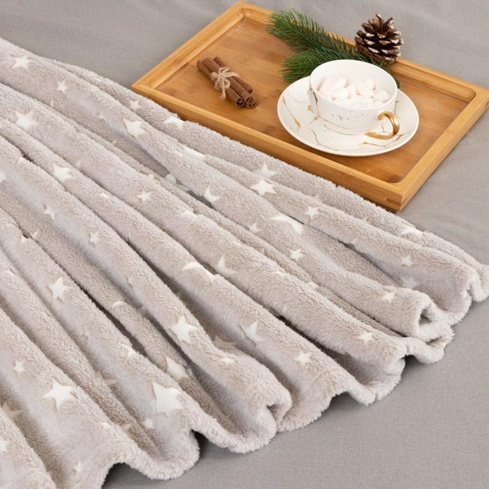 Плед светящийся в темноте Этель «Звезды» цв.серый 150*200 см,100% п/э, корал-флис, 220 гр/м2