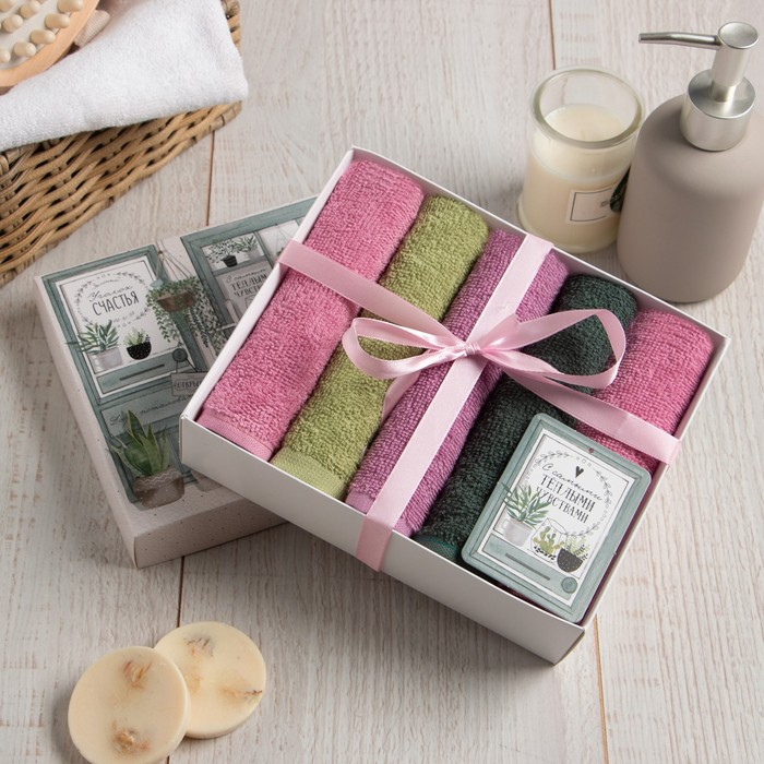 Набор махровых салфеток "Уголок счастья" 30х30 см -5шт, 100% хлопок, 340гр/м2