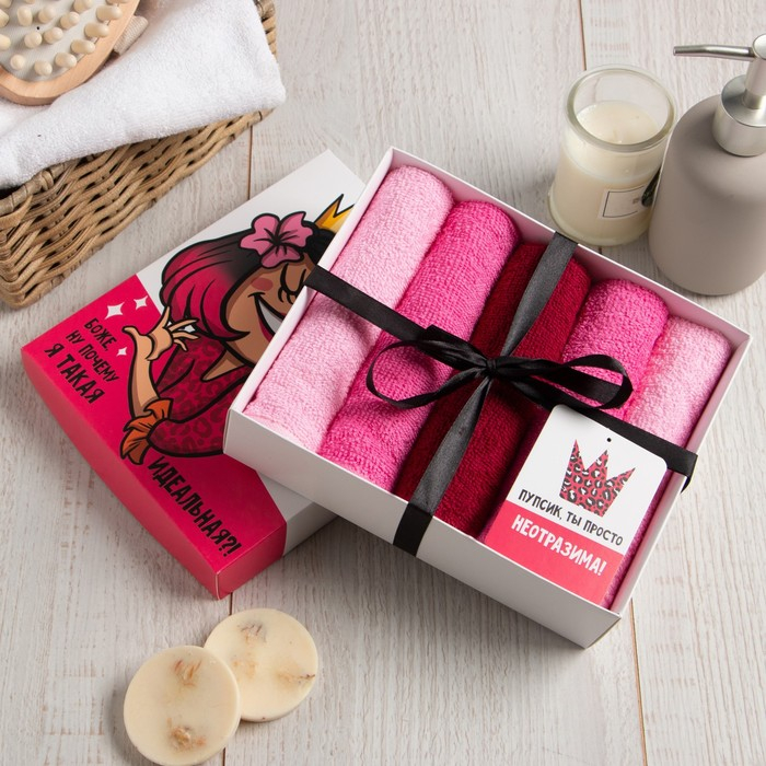 Набор махровых салфеток "Богиня" 30х30 см -5шт, 100% хлопок, 340гр/м2