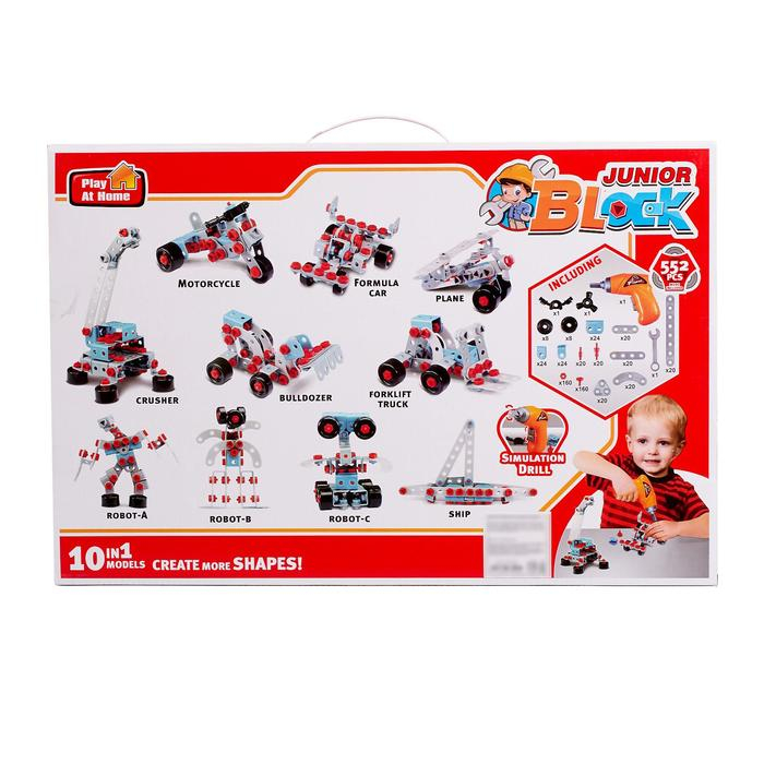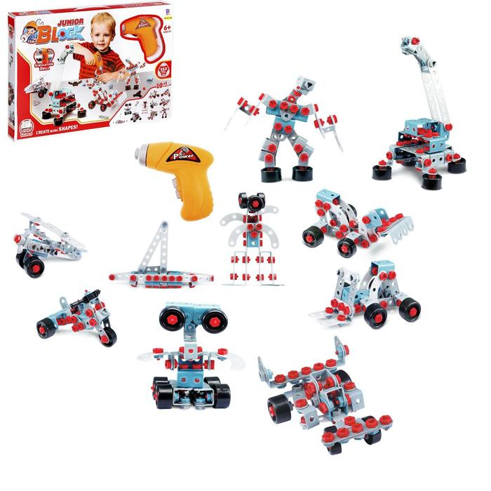 Конструктор «Юный инженер» с шуруповёртом, работает от батареек, 552 детали