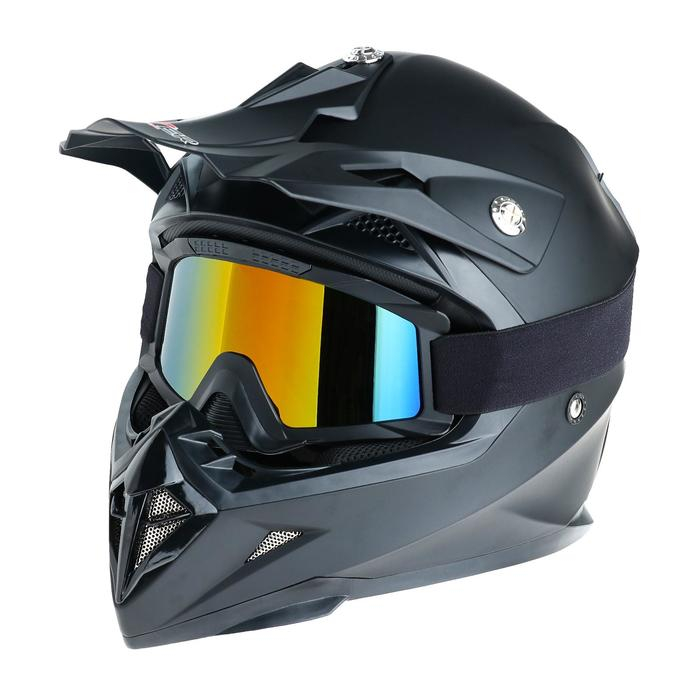 Очки-маска для езды на мототехнике, разборные, стекло хром, черные