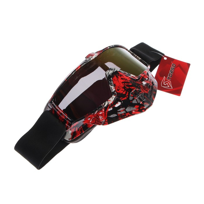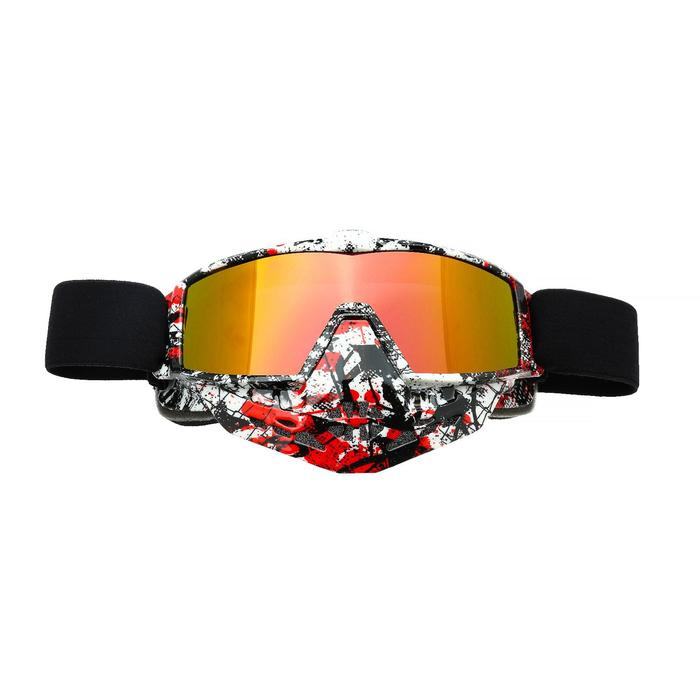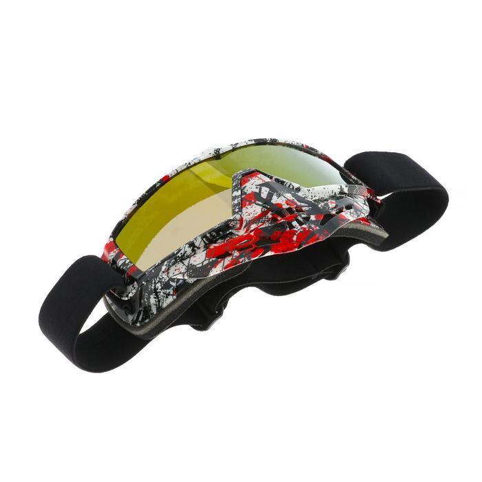 Очки-маска для езды на мототехнике, стекло золотой хром, бело-красно-черные, ОМ-10