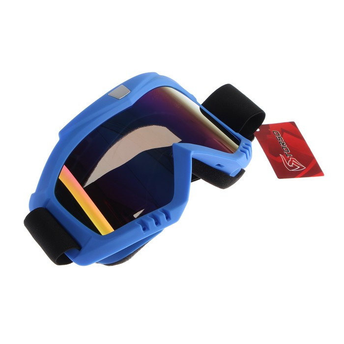 Очки-маска для езды на мототехнике, стекло золотой хром, цвет синий, ОМ-11
