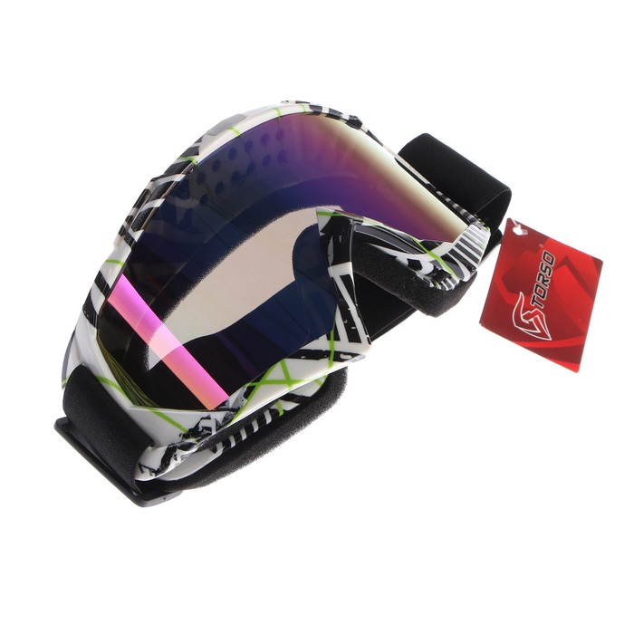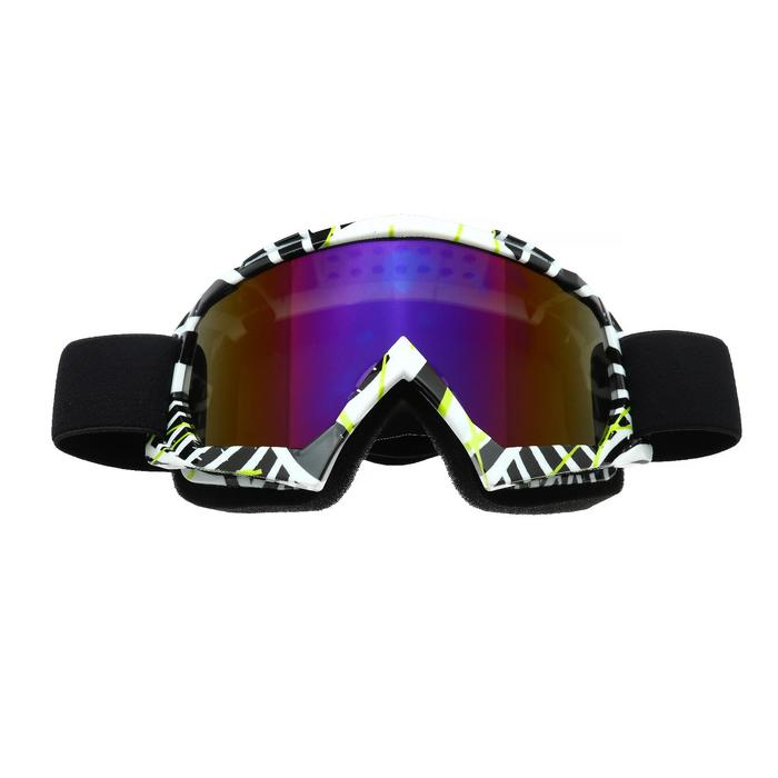 Очки-маска для езды на мототехнике, стекло сине-фиолетовый хамелеон, бело-черные, ОМ-19