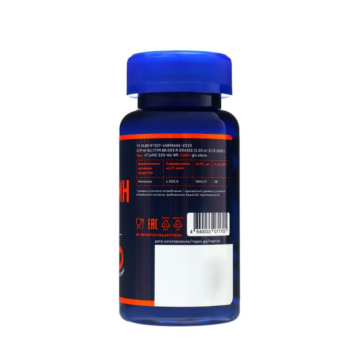 GLS ПРОМЕТИОНИН - Биологически активная добавка (БАД) к пище - Метионин - незаменимая аминокислота, необходима для синтеза холина и фосфолипидов, необходим для обмена серосодержащих аминокислот, адреналина, креатинина, цианокобаламина, аскорбиновой и фолиевой кислот, гормонов.