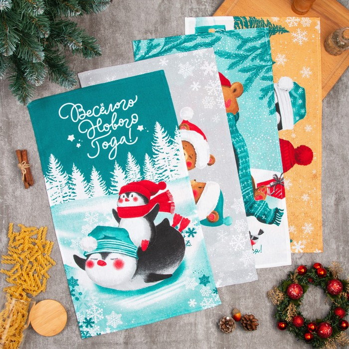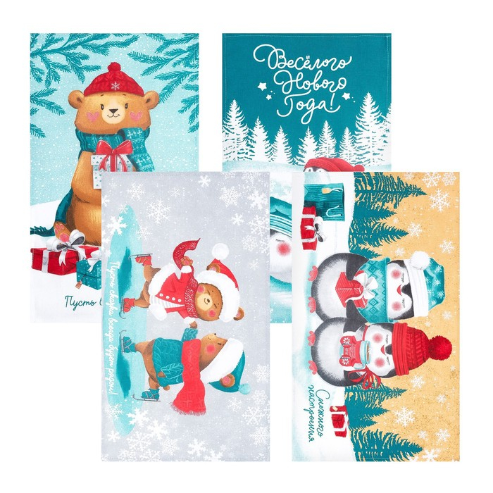 Набор кухонных полотенец Доляна «Веселого Нового года» 35х60см-4шт, 100% хл