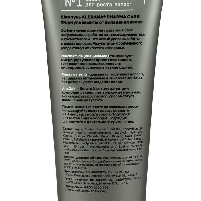 Шампунь для волос мужской Alerana Pharma Care, формула защиты от выпадения волос, 260 мл
