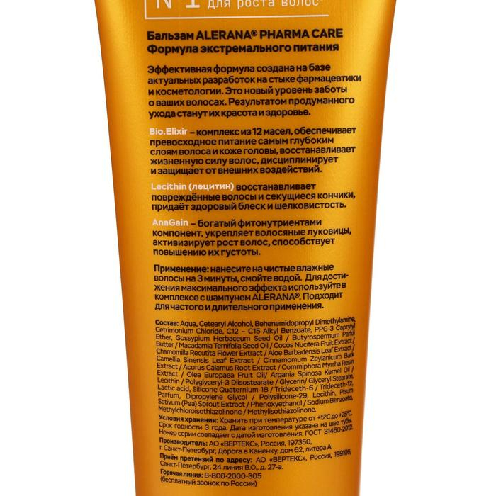 Бальзам для волос "Алерана", Pharma Care, формула экстремального питания, 260 мл