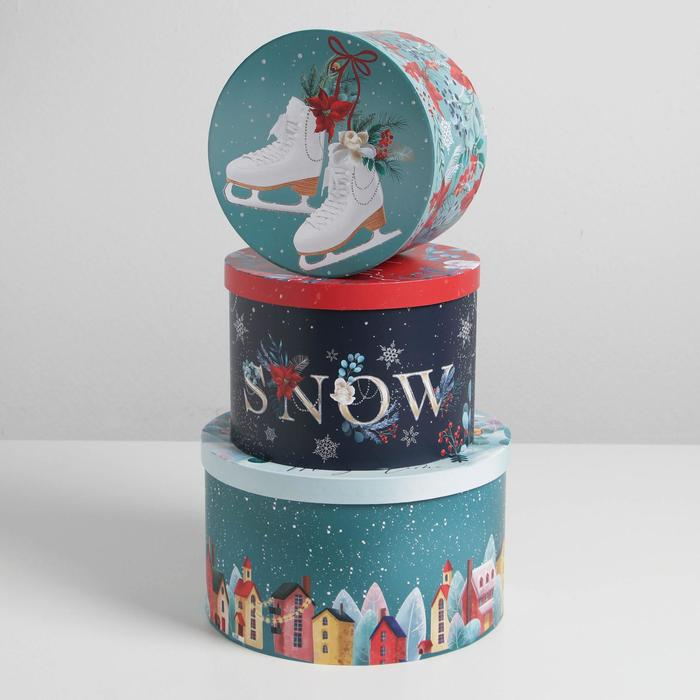 Набор коробок круглых 3 в 1 «Magic time», 18 х 18 х 13 см, 20 х 20 х 14.5 см, 25 х 25 х15 см, Новый год