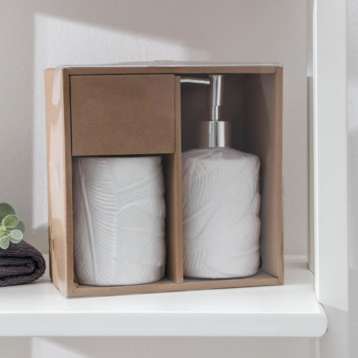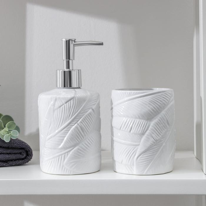 Набор аксессуаров для ванной комнаты «Листва», 2 предмета (дозатор для мыла, стакан), цвет белый
