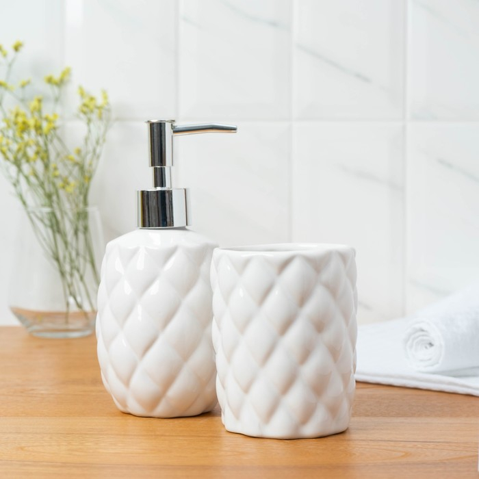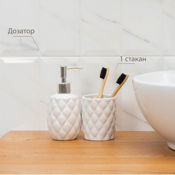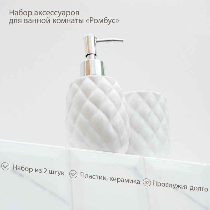 Набор аксессуаров для ванной комнаты «Ромбус», 2 предмета (дозатор для мыла, стакан), цвет белый