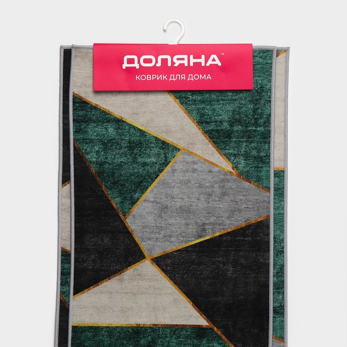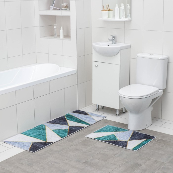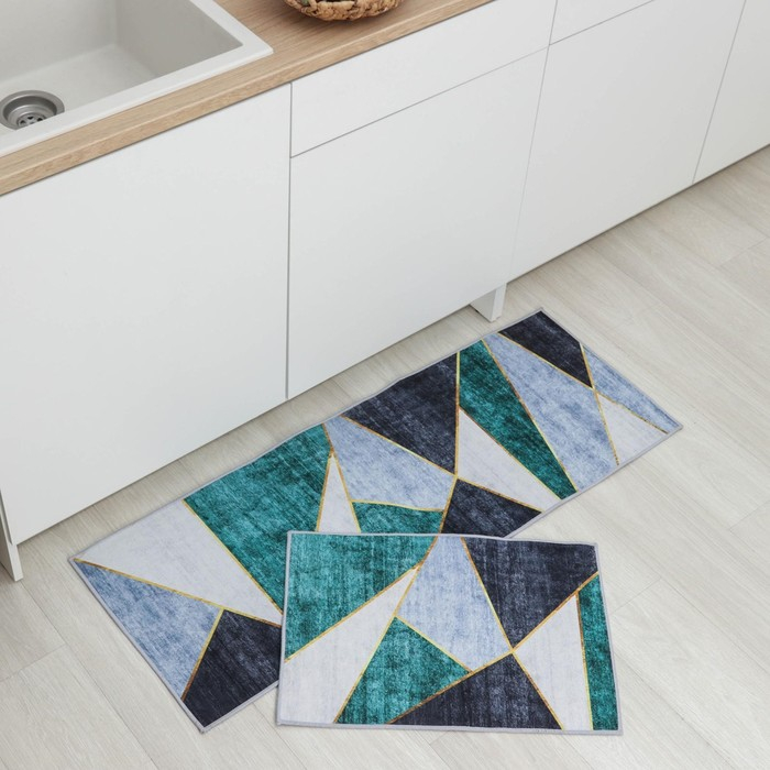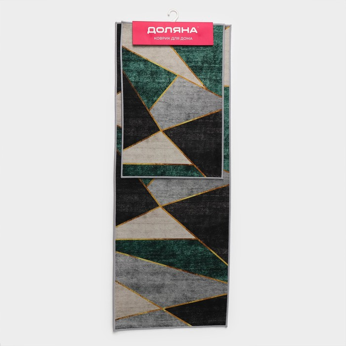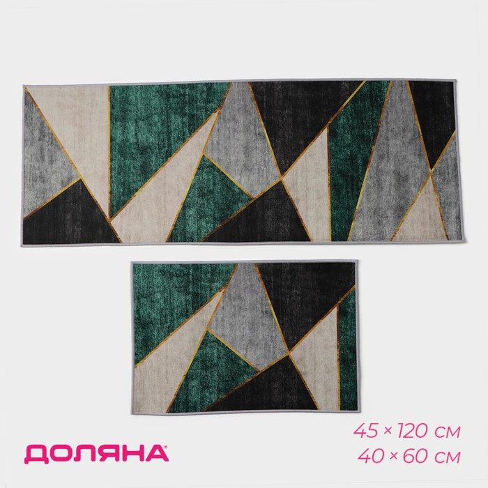 Набор ковриков Доляна «Геометрик», 2 шт, 45×120 см, 40×60 см, цвет зелёно-серый