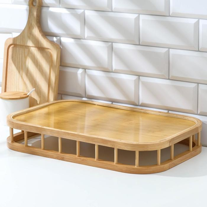 Поднос с ручками Доляна Striata, 40×28×4,5 см, бамбук