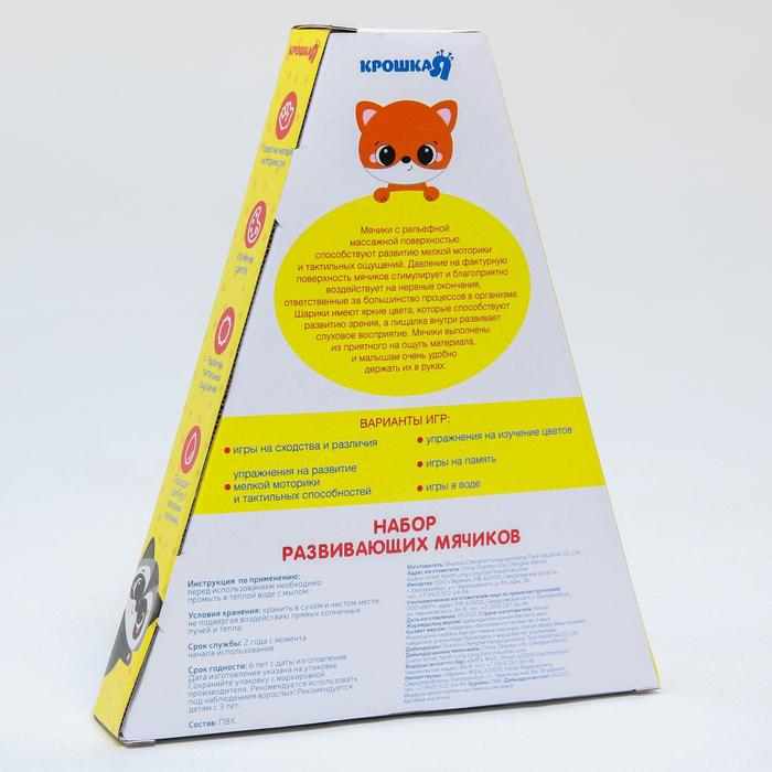 Набор развивающих тактильных мячиков «Лисенок Лёлик», с пищалкой, 3 шт, Крошка Я