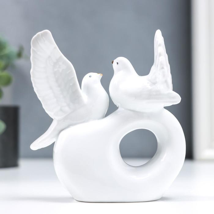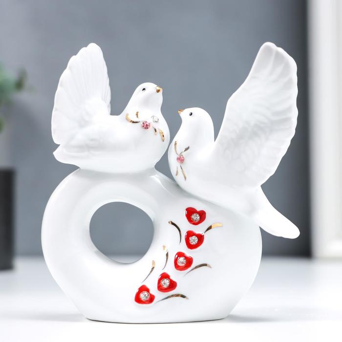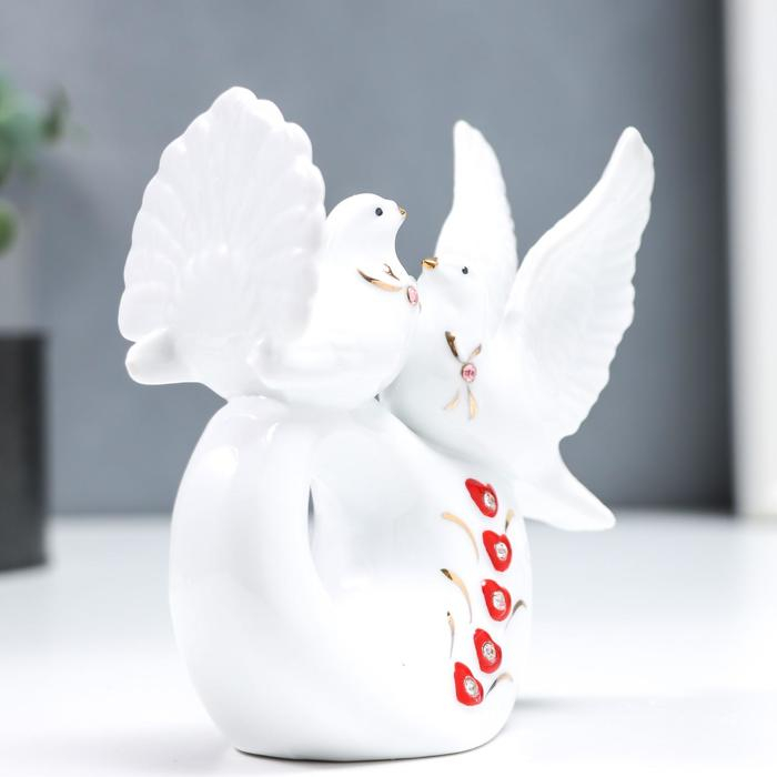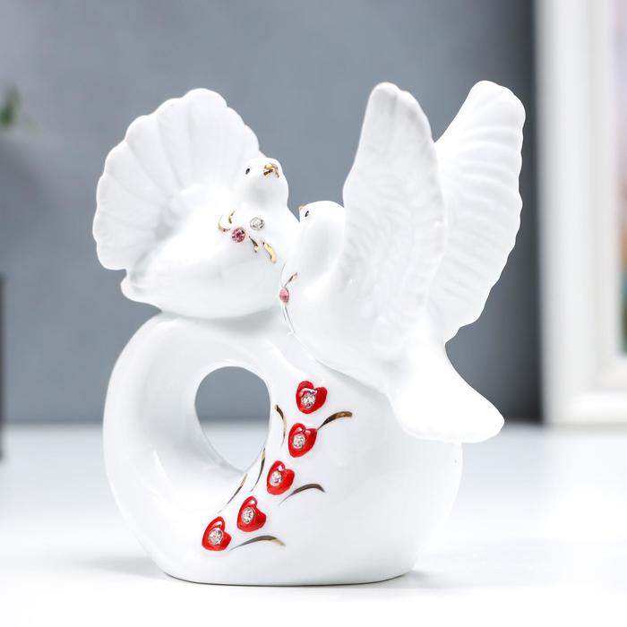 Сувенир керамика "Белые голубки на сердечке" стразы 11 см