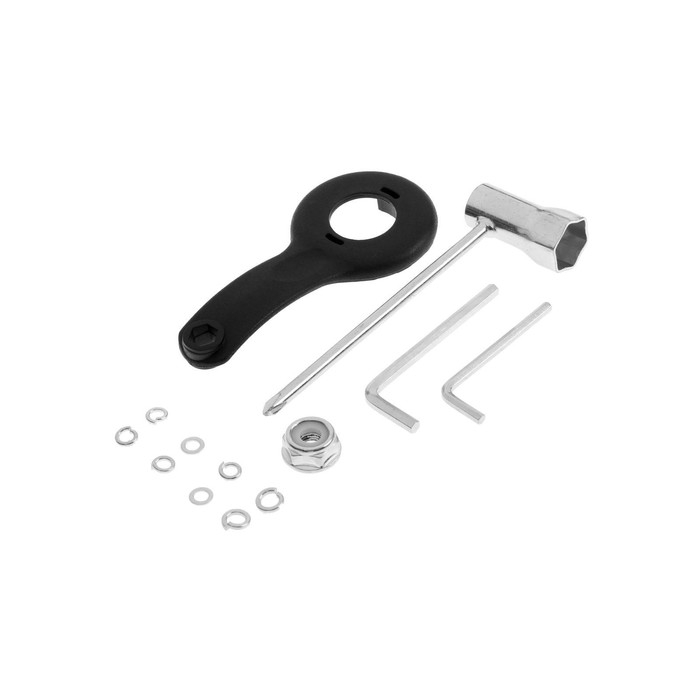 В комплект входят леска и металлический нож, которые справятся с мягкой труднодоступной и высокой жёсткой травой.