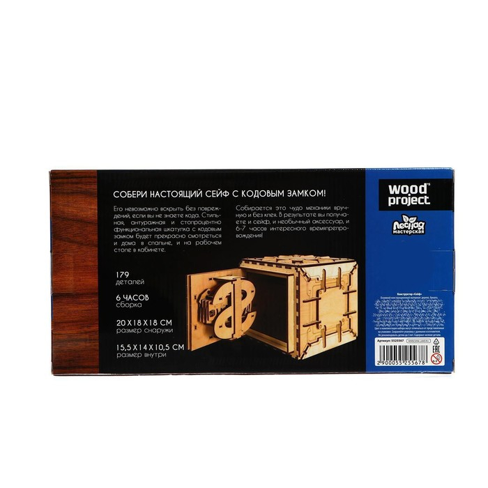 Деревянный конструктор «Сейф» подойдёт для того, чтобы весело провести время и развить творческие способности. Конструктор состоит из 179 деталей, которые нужно собрать в модель настоящего сейфа.