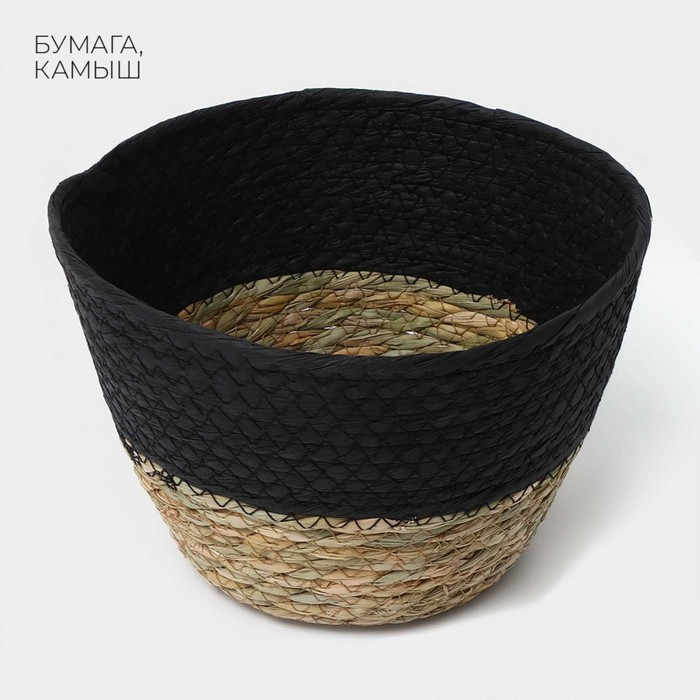 Корзина для хранения плетёная ручной работы LaDо́m «Рика», плетёная, 21×21×15 см, цвет чёрный
