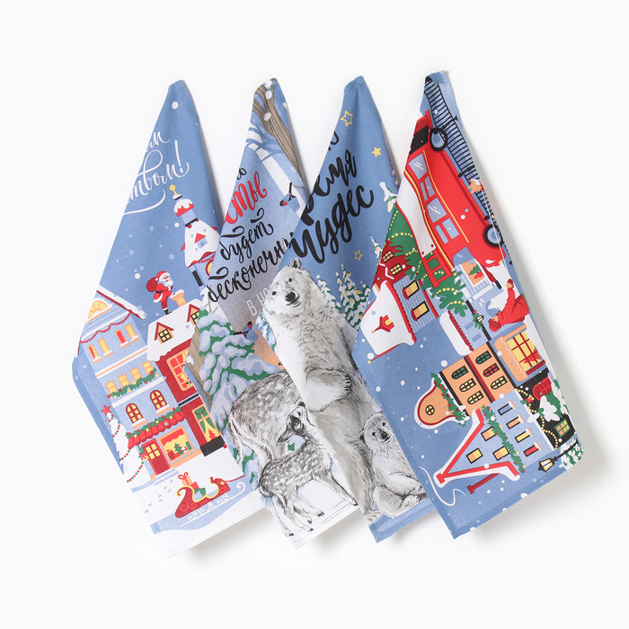 Набор кухонных полотенец «Доляна» Время чудес 35х60см-4шт, 100% хл