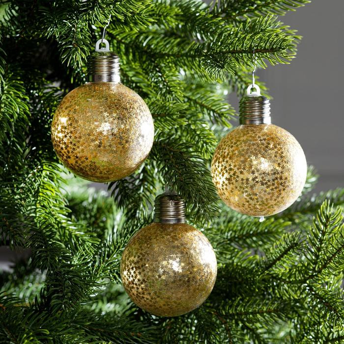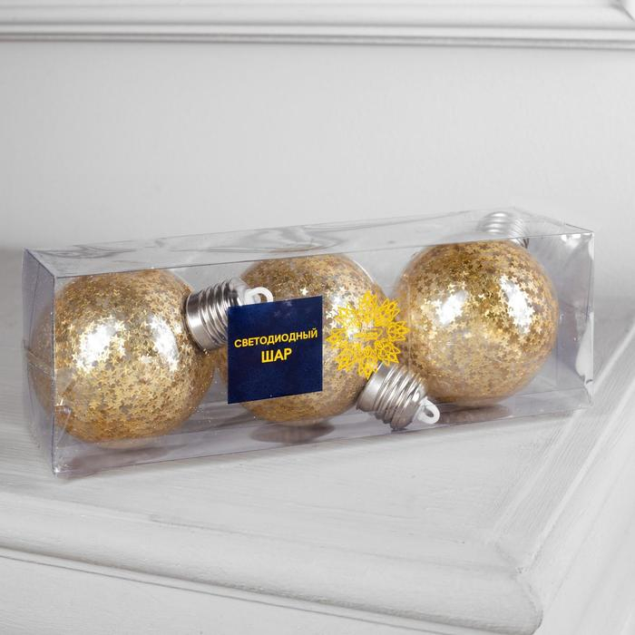 Набор ёлочных шаров «Звёздочки золотистые» 3 шт., батарейки, 5 LED, свечение тёплое белое