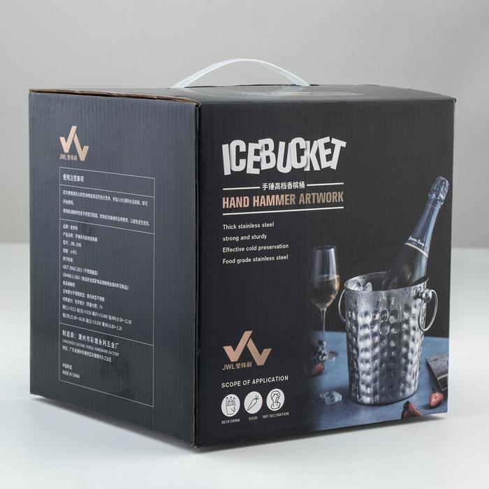 Ведро для льда из нержавеющей стали «Чеканный», 5,2 л, 25×20×20,5 см, 201 сталь, цвет серебряный