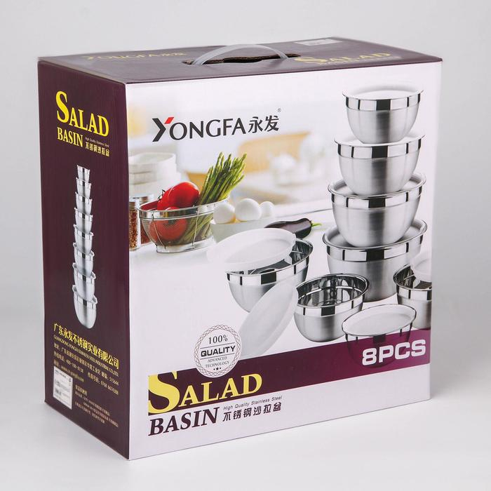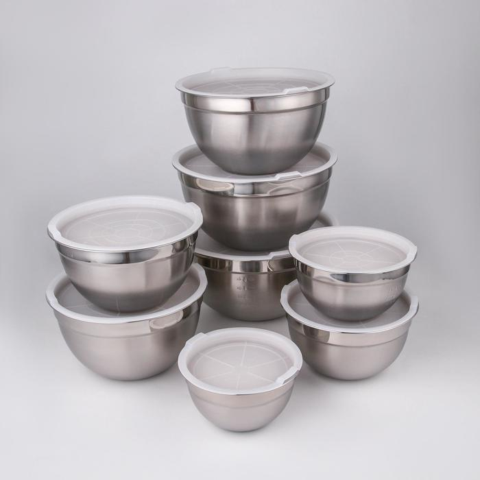 Набор мисок из нержавеющей стали с крышками, 8 шт: d=18 см, d=20 см, d=22 см, d=24 см, d=26 см, d=28 см, d=30 см, d=32 см