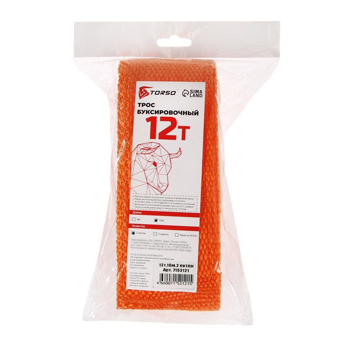 Трос-лента буксировочный TORSO, 12 т, 10 м, 2 петли