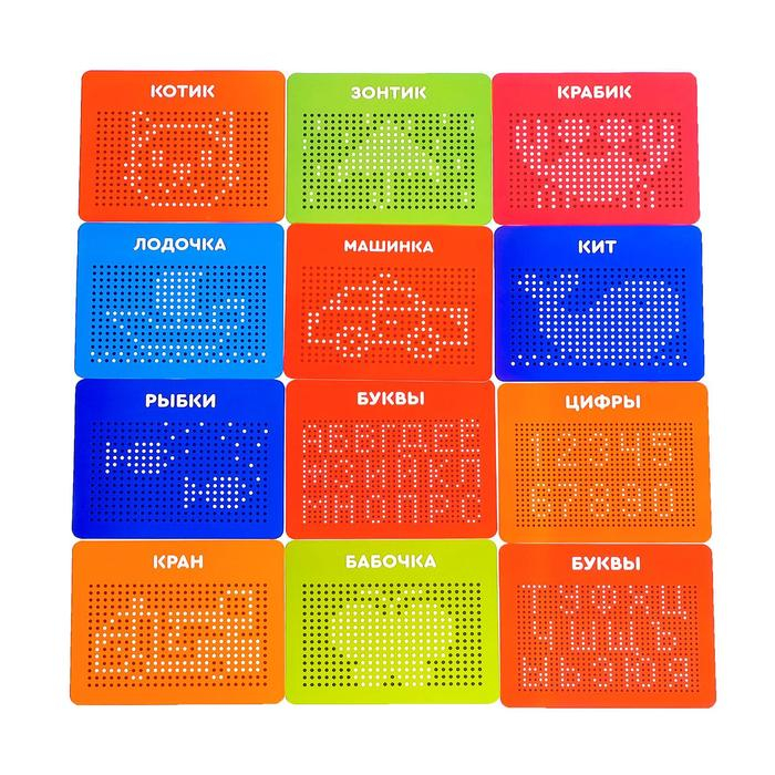 Планшет обучающий «Магнитное рисование», 120 отверстий, 5 карточек, цвет чёрный