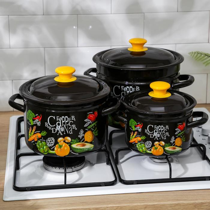 Набор кастрюль «Рацион», 3 предмета: 2 л, 4 л, 6 л, эмалированные крышки, индукция