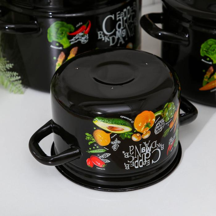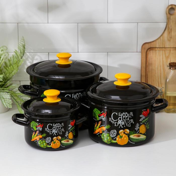 Набор эмалированных кастрюль «Голубика», 3 предмета: 1,5 л, 2,9 л, 4,5 л
