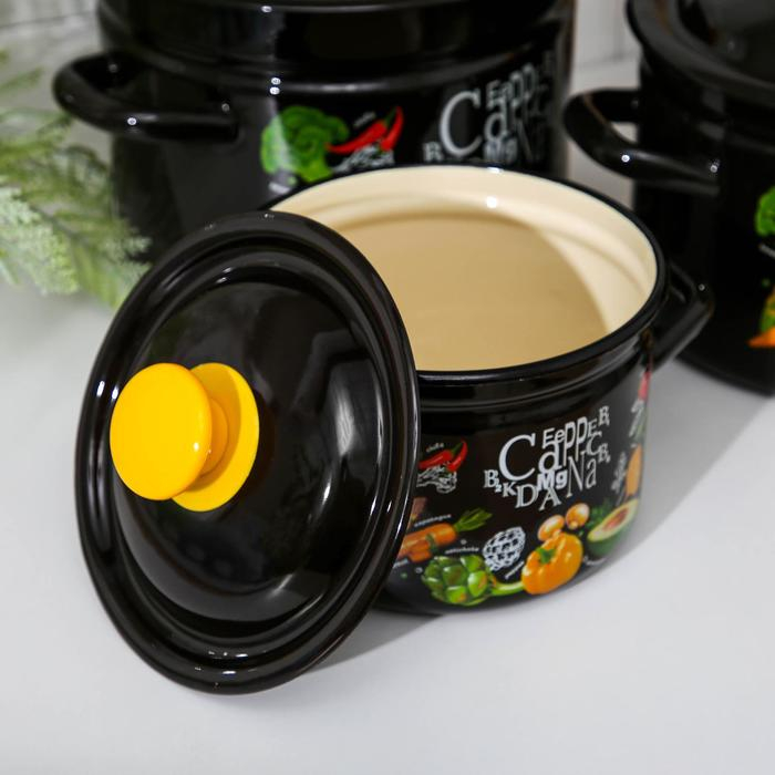 Кастрюли сделаны из качественной стали, покрытой эмалью с декоративным рисунком. Они отлично подходят для приготовления и хранения различных блюд.
