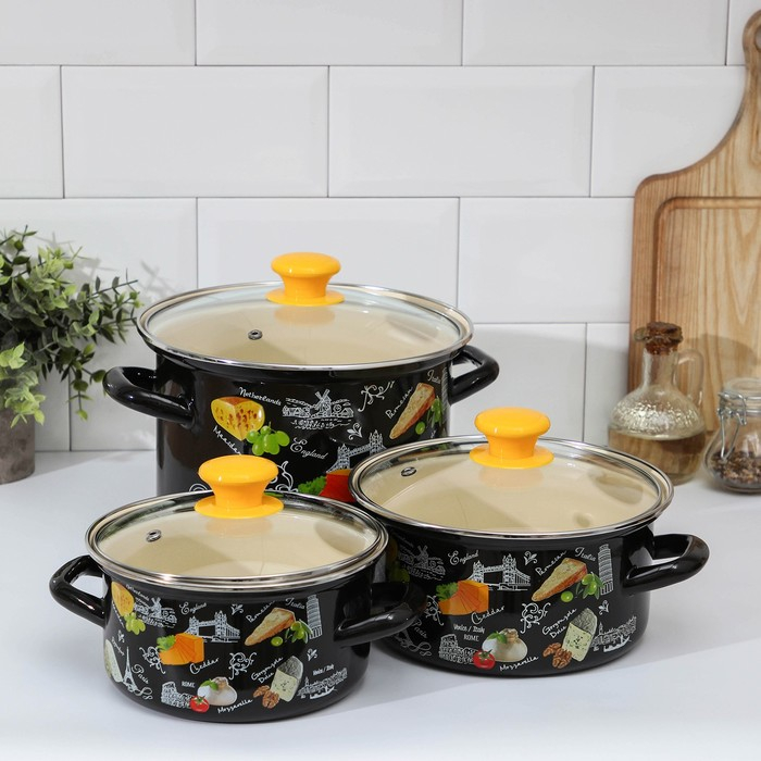 Набор кастрюль «Сыр 5-1 Экстра», 3 предмета: 1,5 л, 2,3 л, 5 л, крышки, индукция